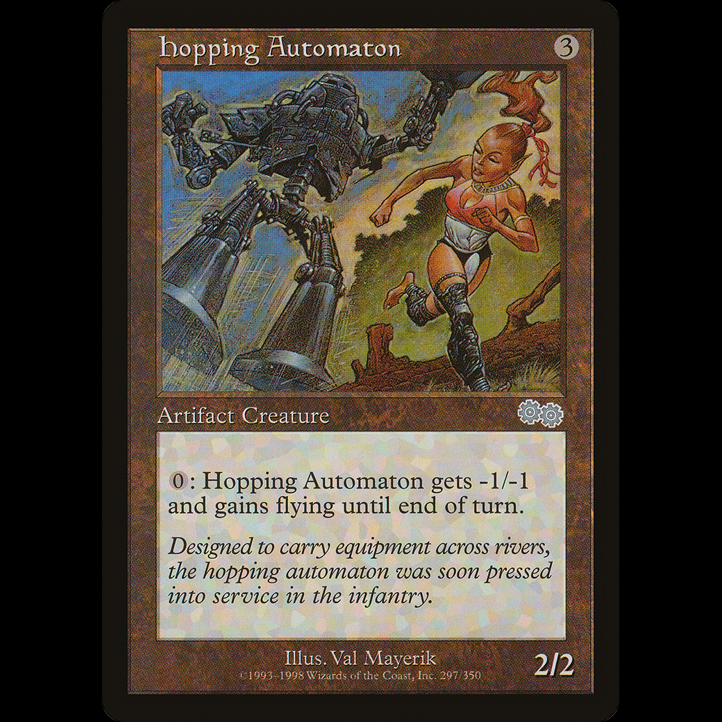 : Hopping Automaton gets -1/-1 and gains flying until end of turn.