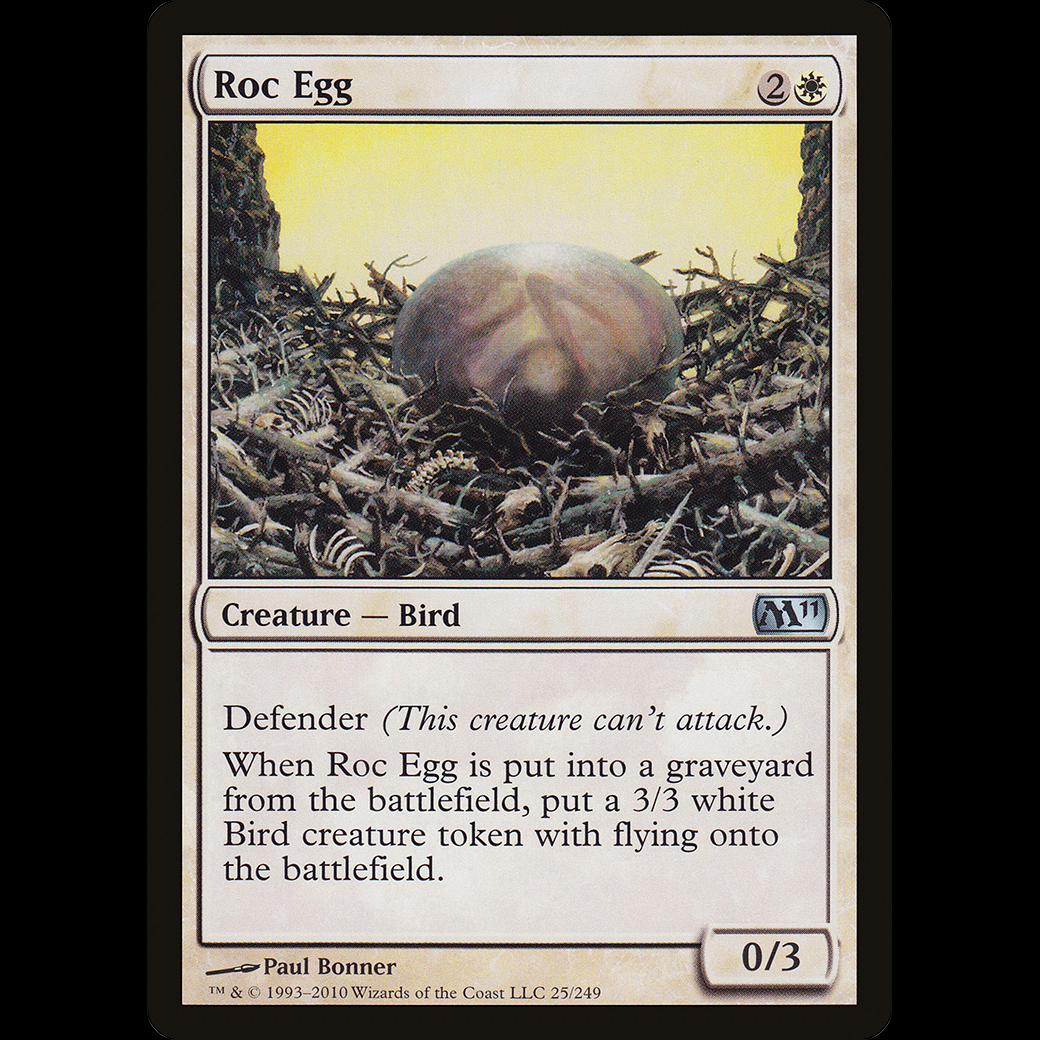 When Roc Egg dies, create a 3/3 white Bird creature token with flying.