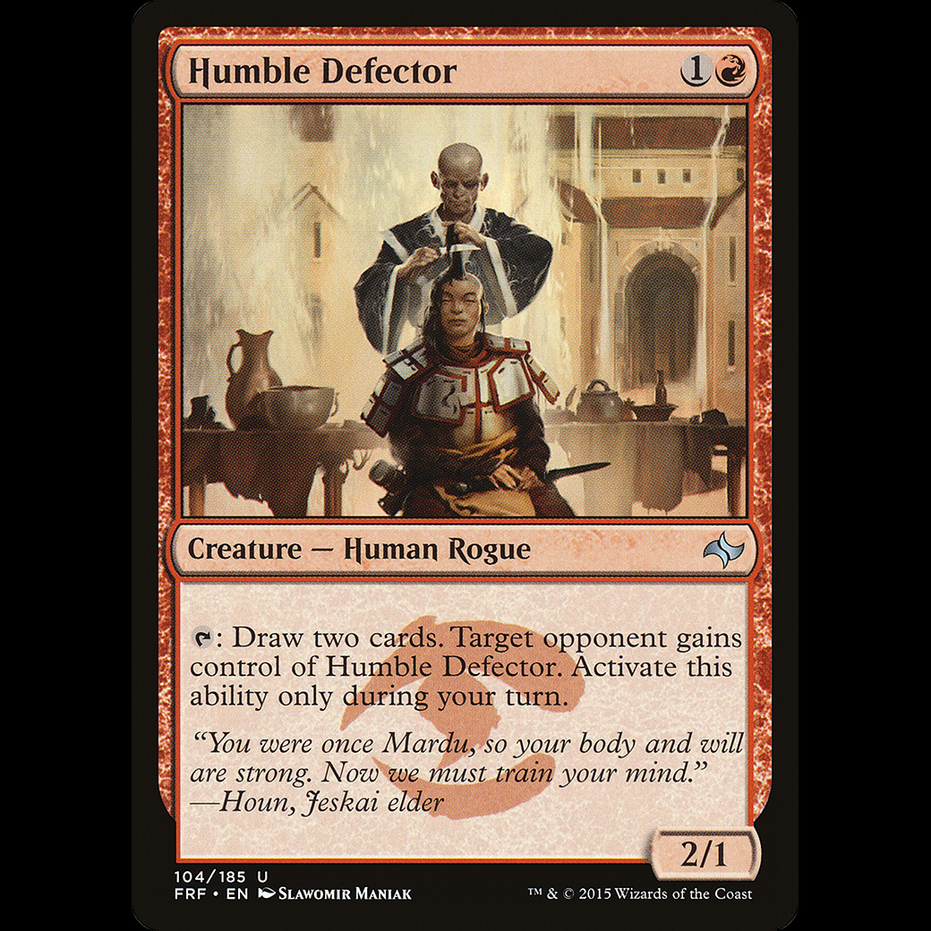 : Draw two cards. Target opponent gains control of Humble Defector. Activate only during your turn.