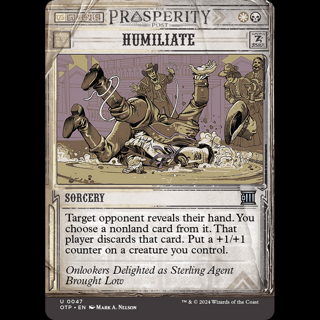 Target opponent reveals their hand. You choose a nonland card from it. That player discards that card. Put a +1/+1 counter on a creature you control.