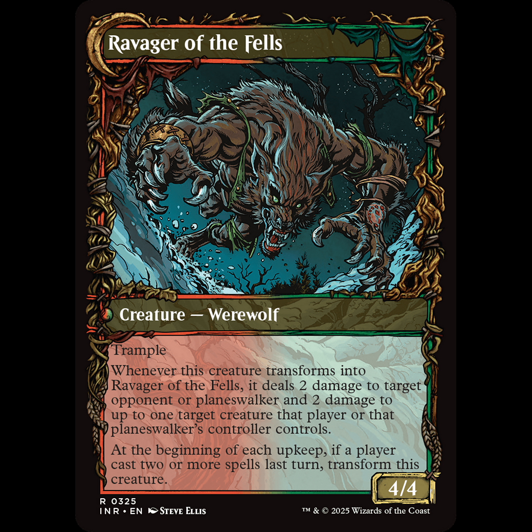 At the beginning of each upkeep, if a player cast two or more spells last turn, transform Ravager of the Fells.