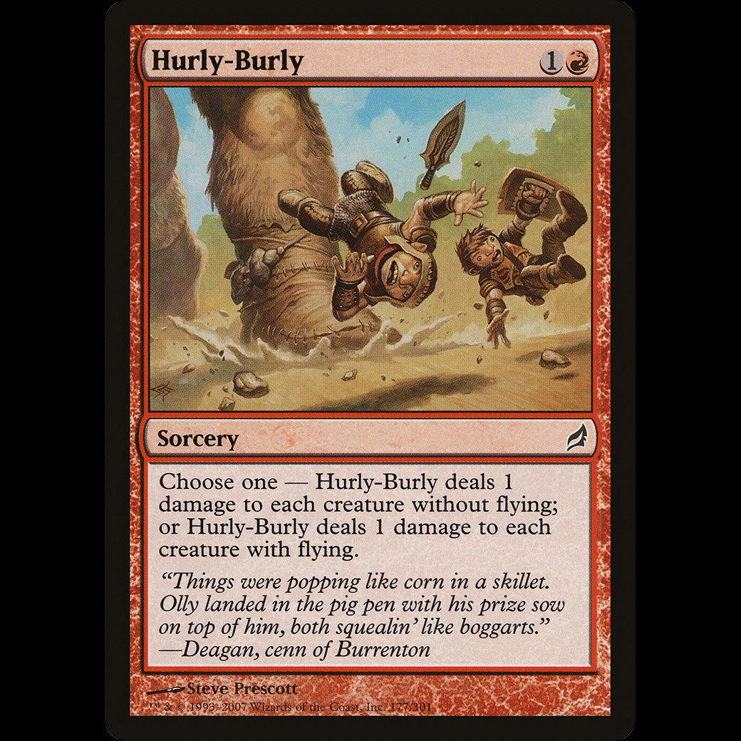 • Hurly-Burly deals 1 damage to each creature without flying.