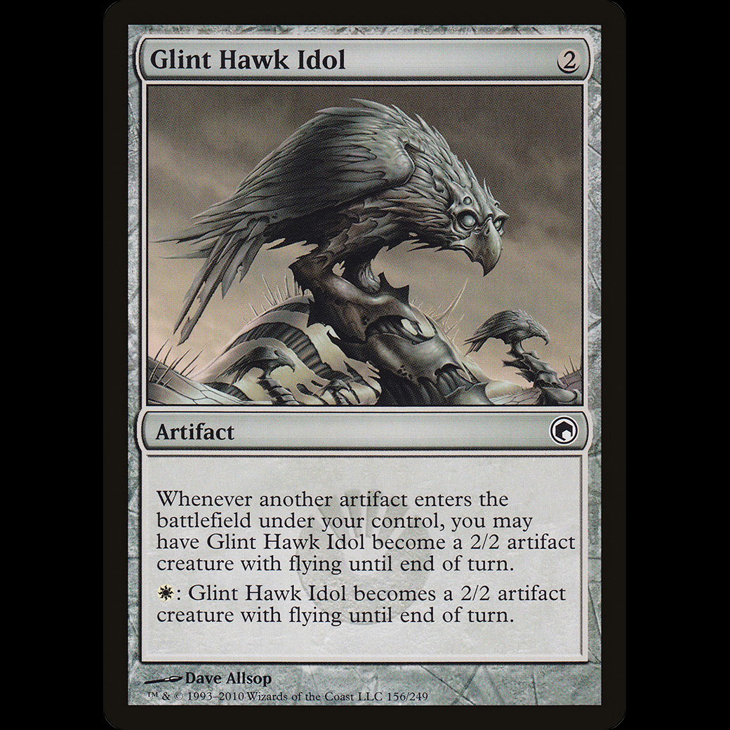 Whenever another artifact enters the battlefield under your control, you may have Glint Hawk Idol become a 2/2 Bird artifact creature with flying until end of turn.