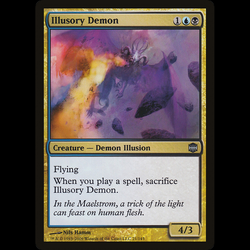MTG Illusory Demon Alara RebornFlying When you cast a spell, sacrifice Illusory Demon.
