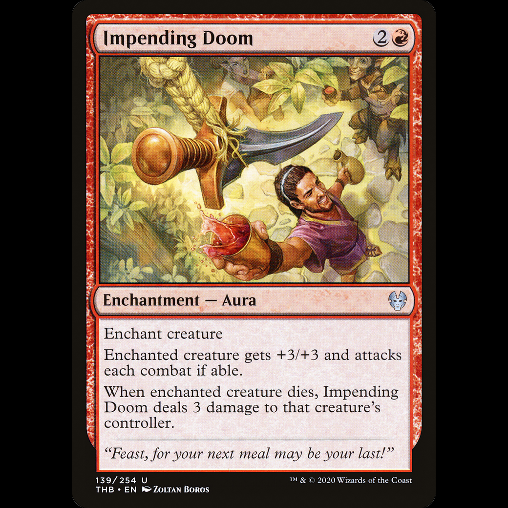 Enchanted creature gets +3/+3 and attacks each combat if able.