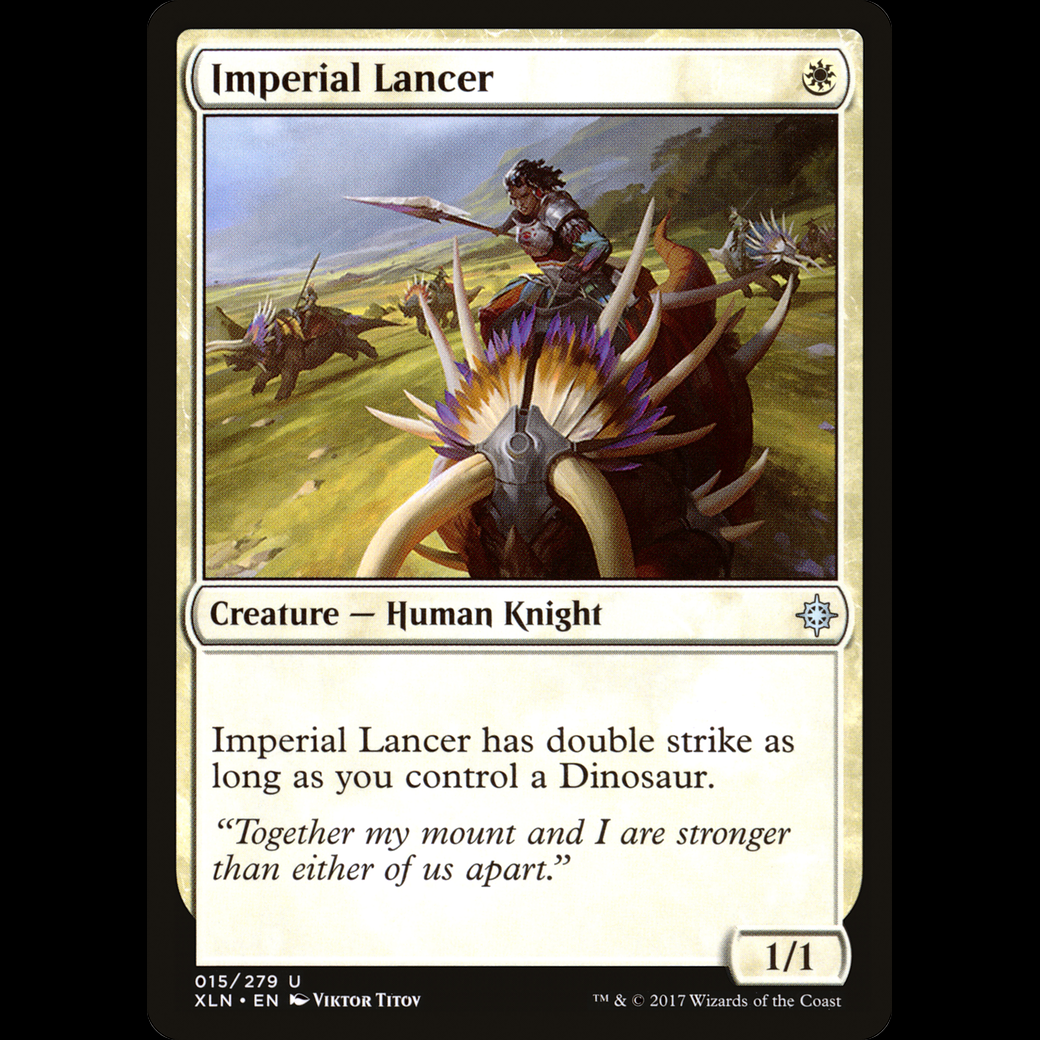 MTG Imperial Lancer IxalanImperial Lancer has double strike as long as you control a Dinosaur.