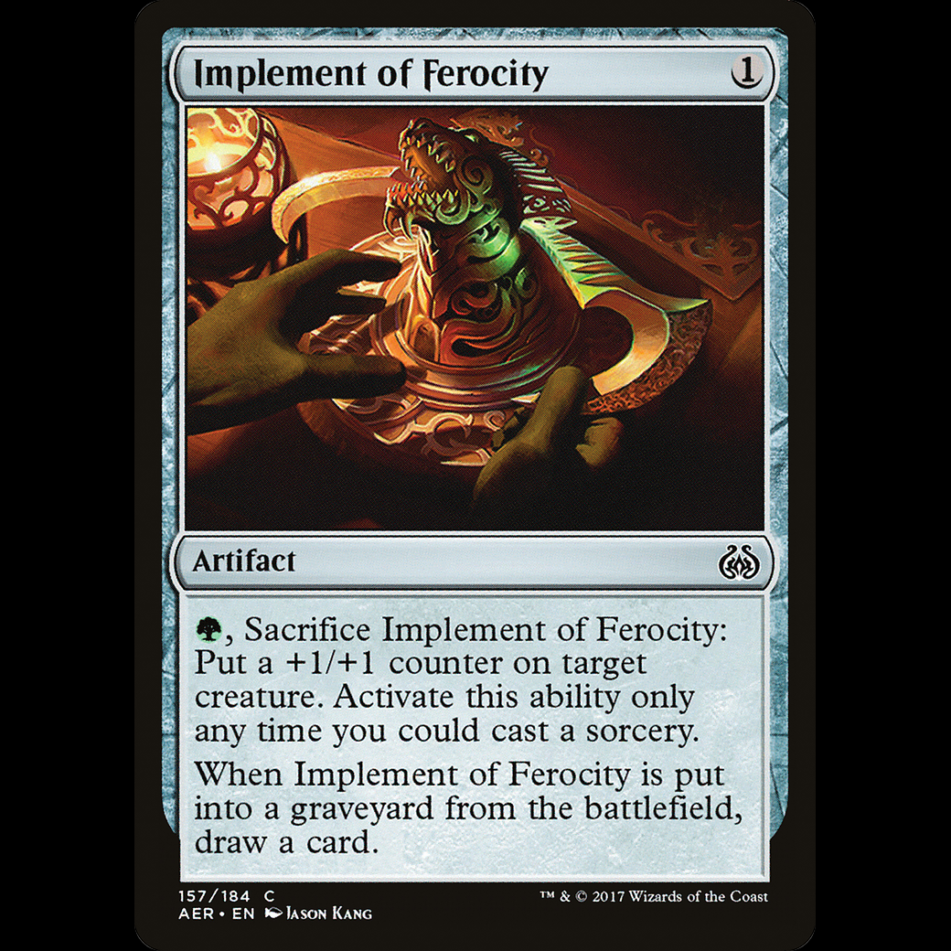 , Sacrifice Implement of Ferocity: Put a +1/+1 counter on target creature. Activate only as a sorcery.