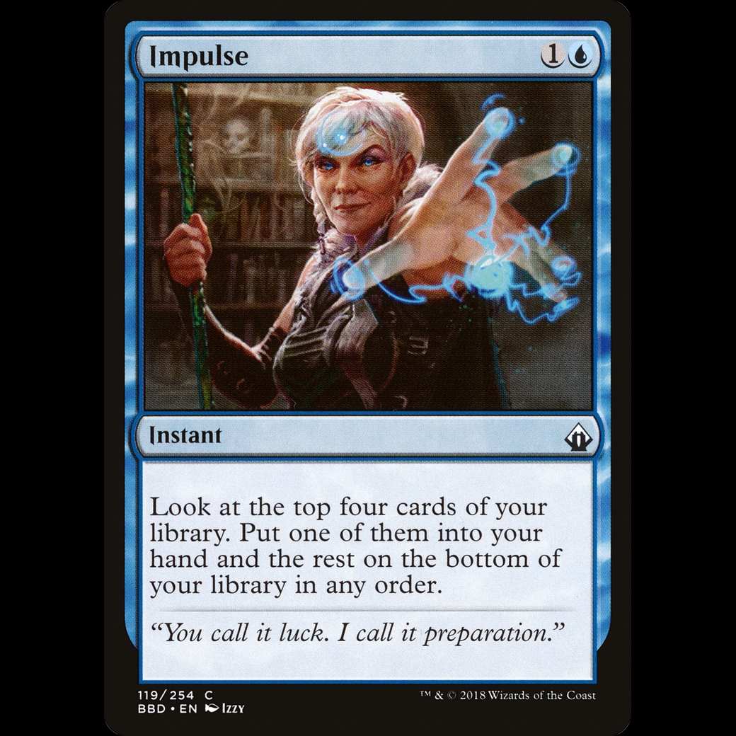 Look at the top four cards of your library. Put one of them into your hand and the rest on the bottom of your library in any order.