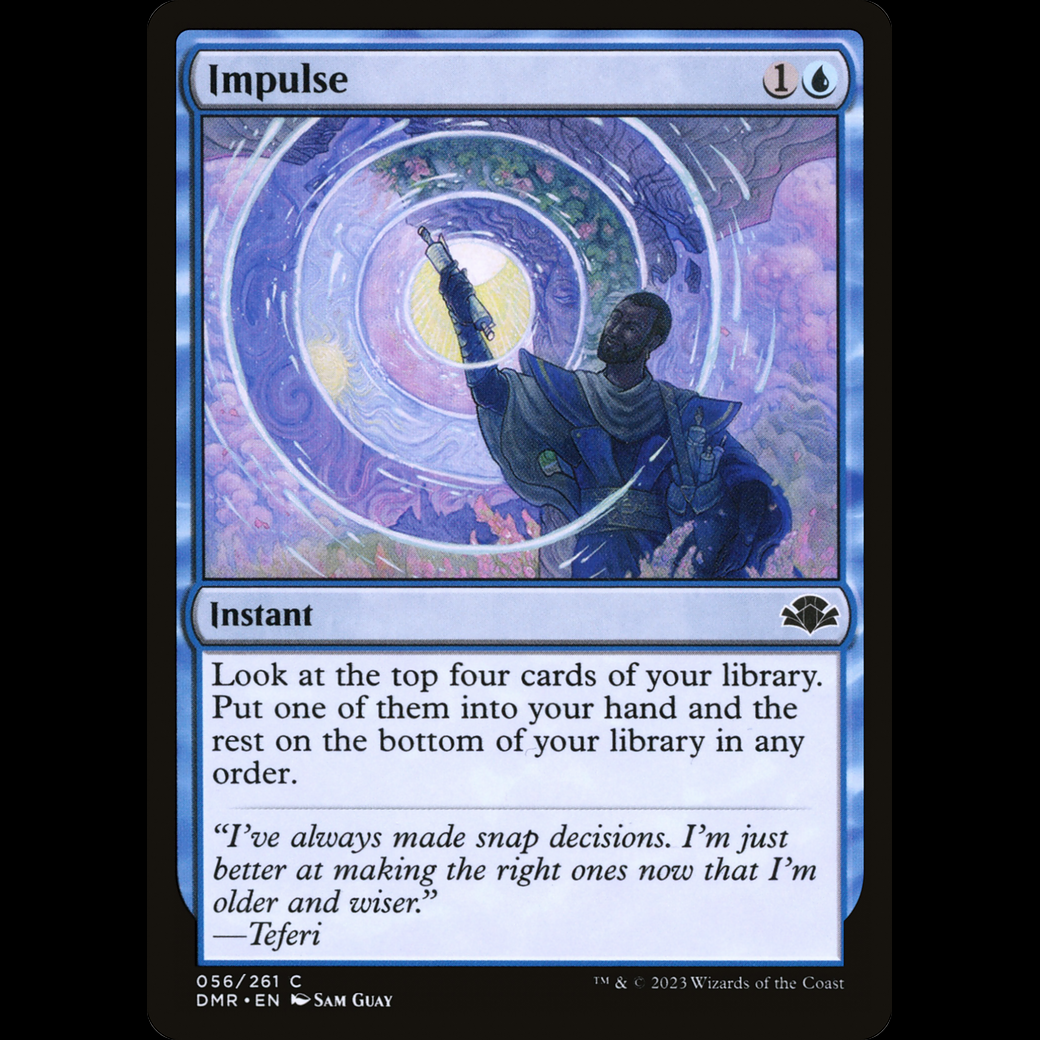 Look at the top four cards of your library. Put one of them into your hand and the rest on the bottom of your library in any order.