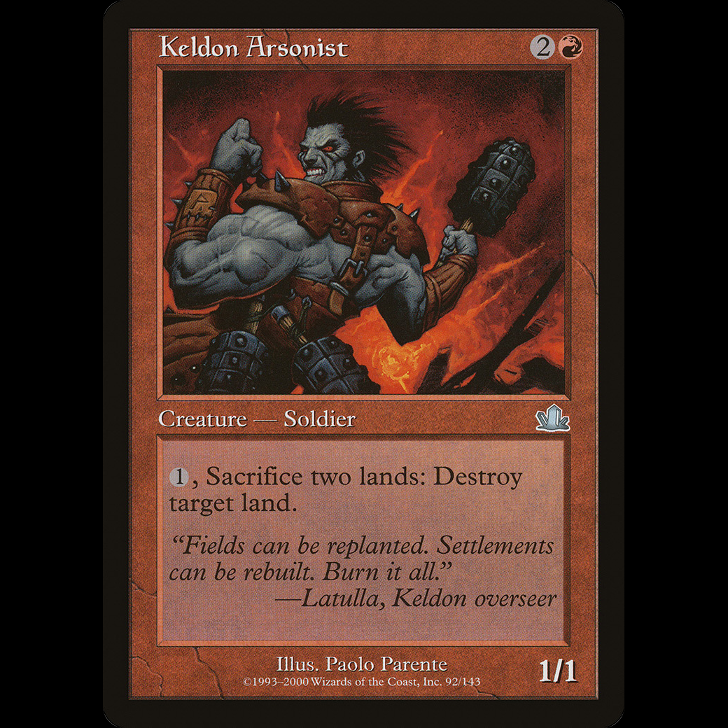 MTG Incendiario Keldon (Keldon Arsonist) Prophecy, Sacrifice two lands: Destroy target land.