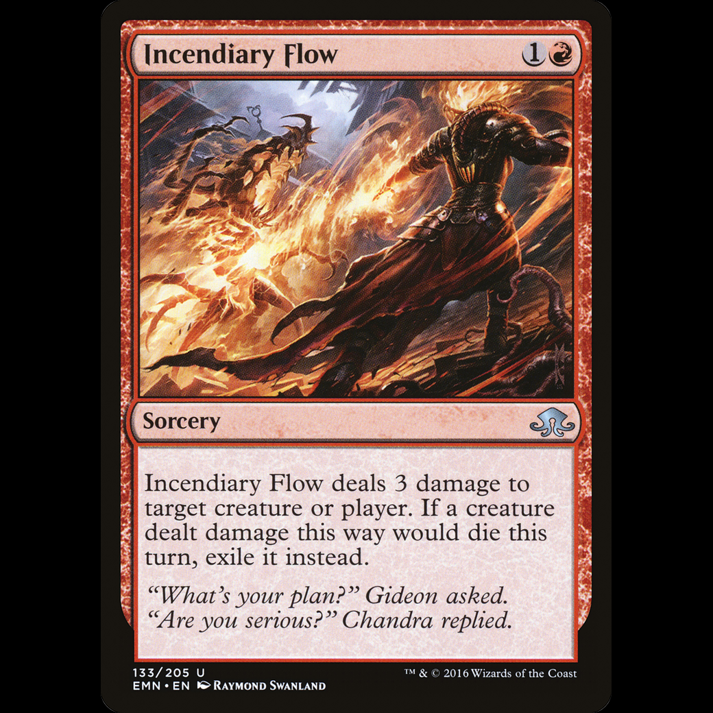 Incendiary Flow deals 3 damage to any target. If a creature dealt damage this way would die this turn, exile it instead.