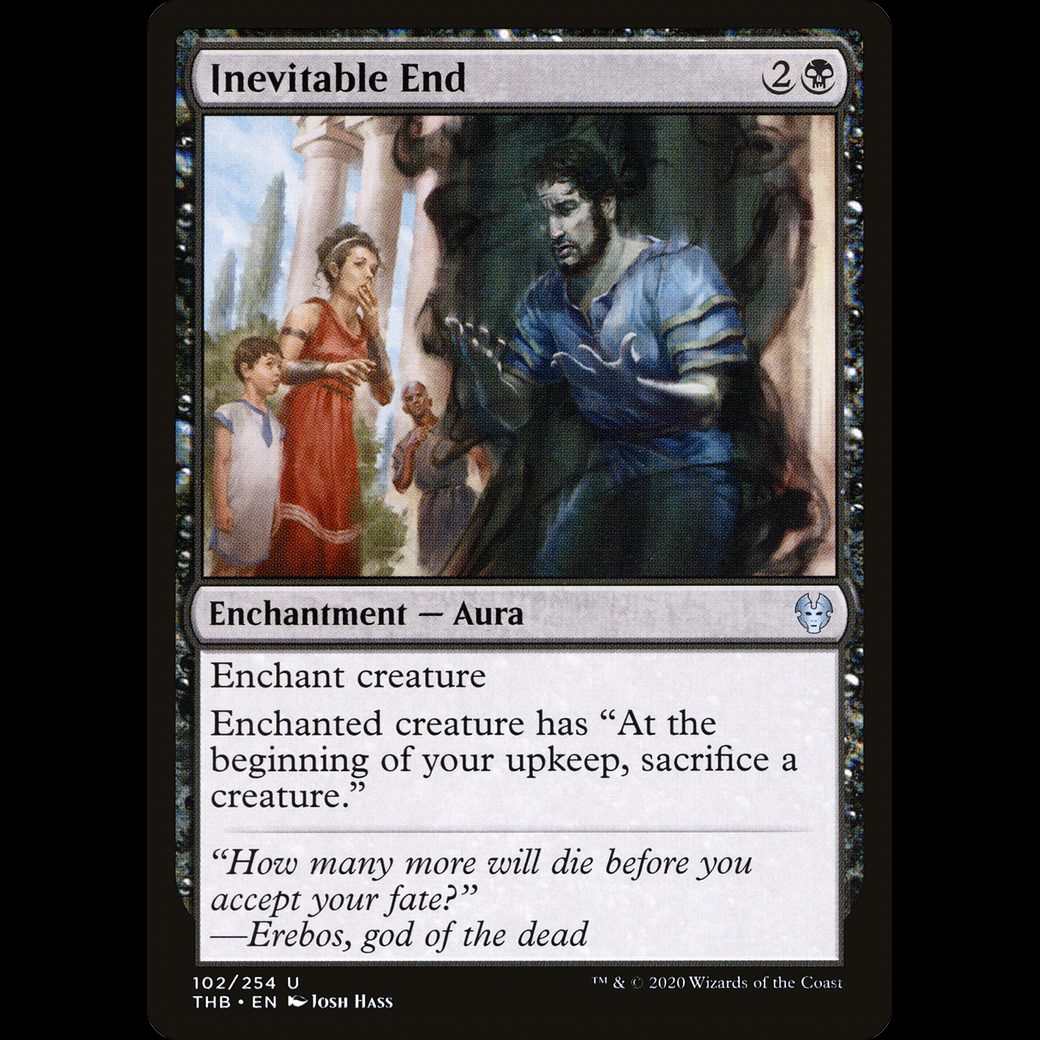 Enchanted creature has "At the beginning of your upkeep, sacrifice a creature."