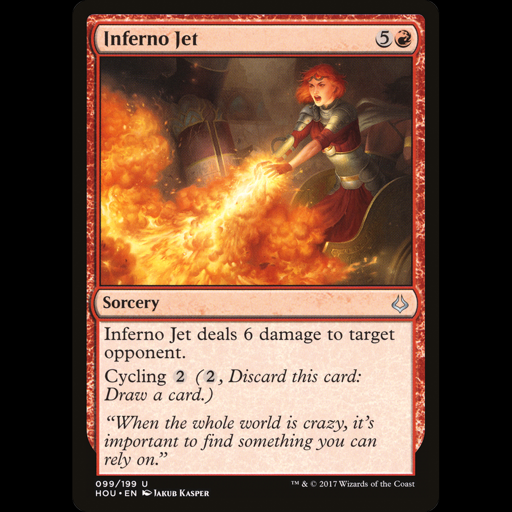 Inferno Jet deals 6 damage to target opponent or planeswalker.