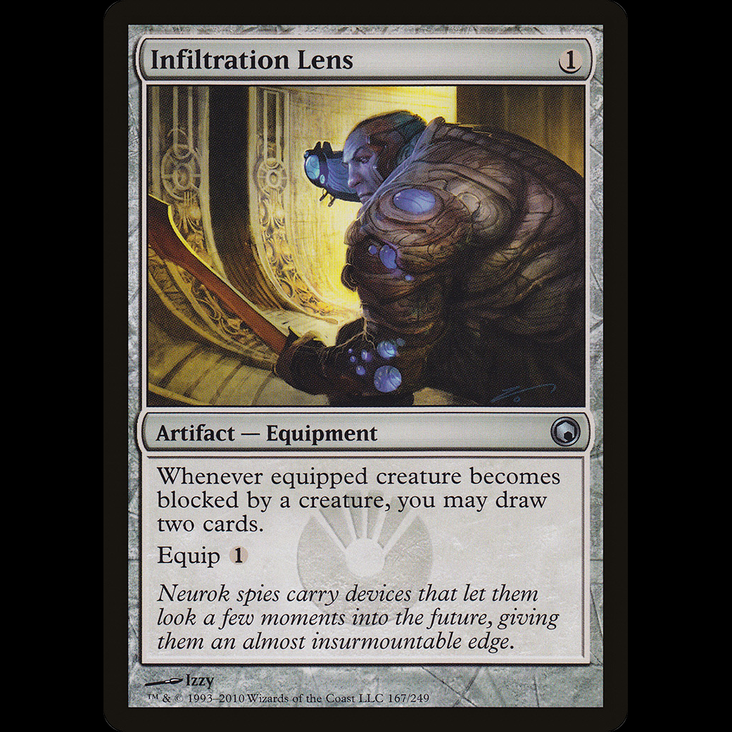 Whenever equipped creature becomes blocked by a creature, you may draw two cards.