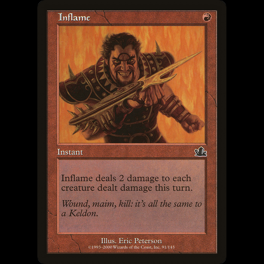 MTG Inflame ProphecyInflame deals 2 damage to each creature dealt damage this turn.