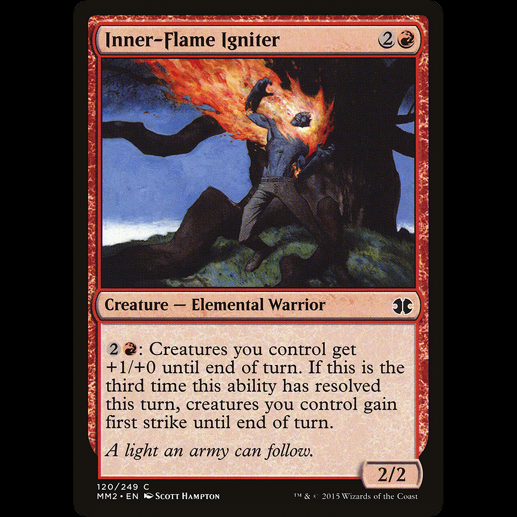 : Creatures you control get +1/+0 until end of turn. If this is the third time this ability has resolved this turn, creatures you control gain first strike until end of turn.