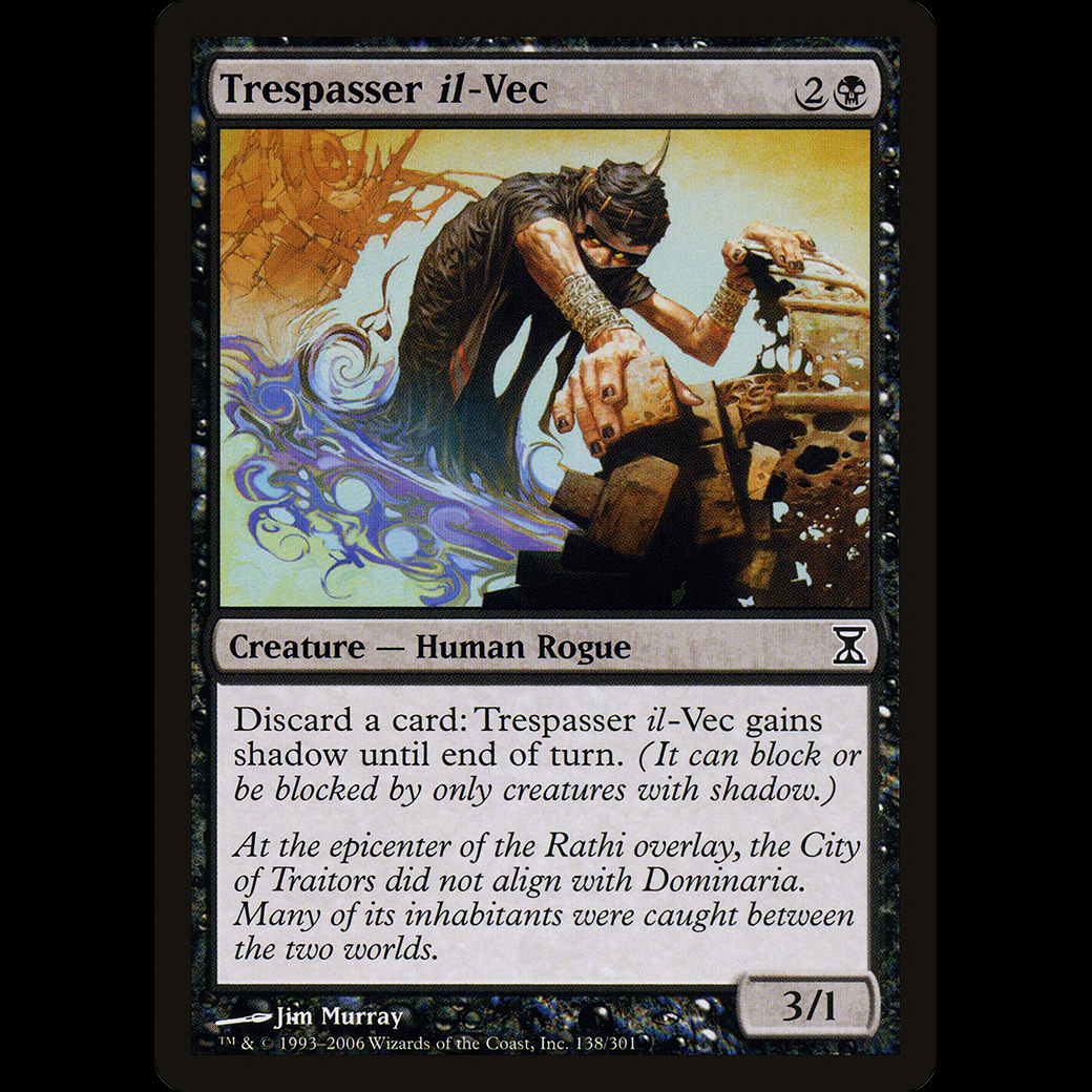 Discard a card: Trespasser il-Vec gains shadow until end of turn. (It can block or be blocked by only creatures with shadow.)