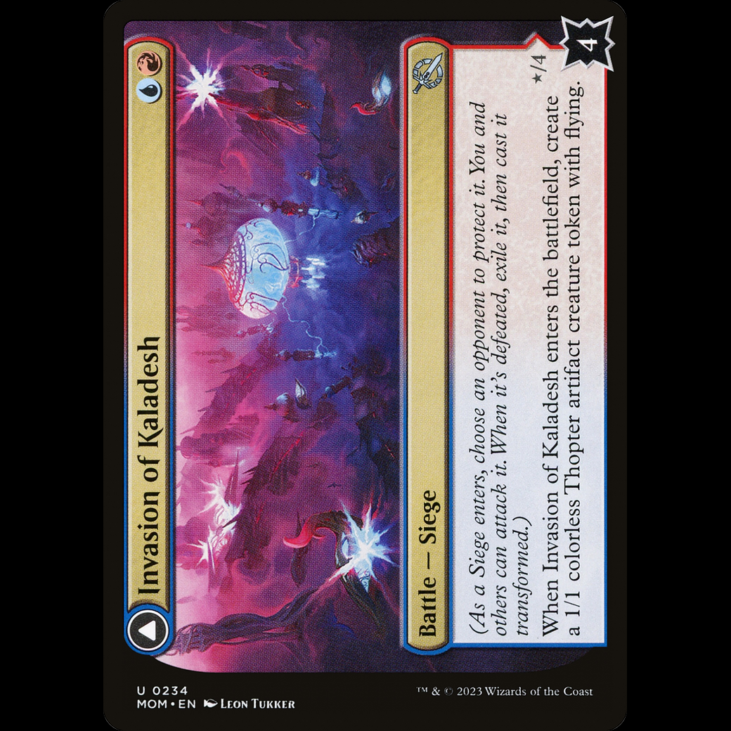 When Invasion of Kaladesh enters, create a 1/1 colorless Thopter artifact creature token with flying.