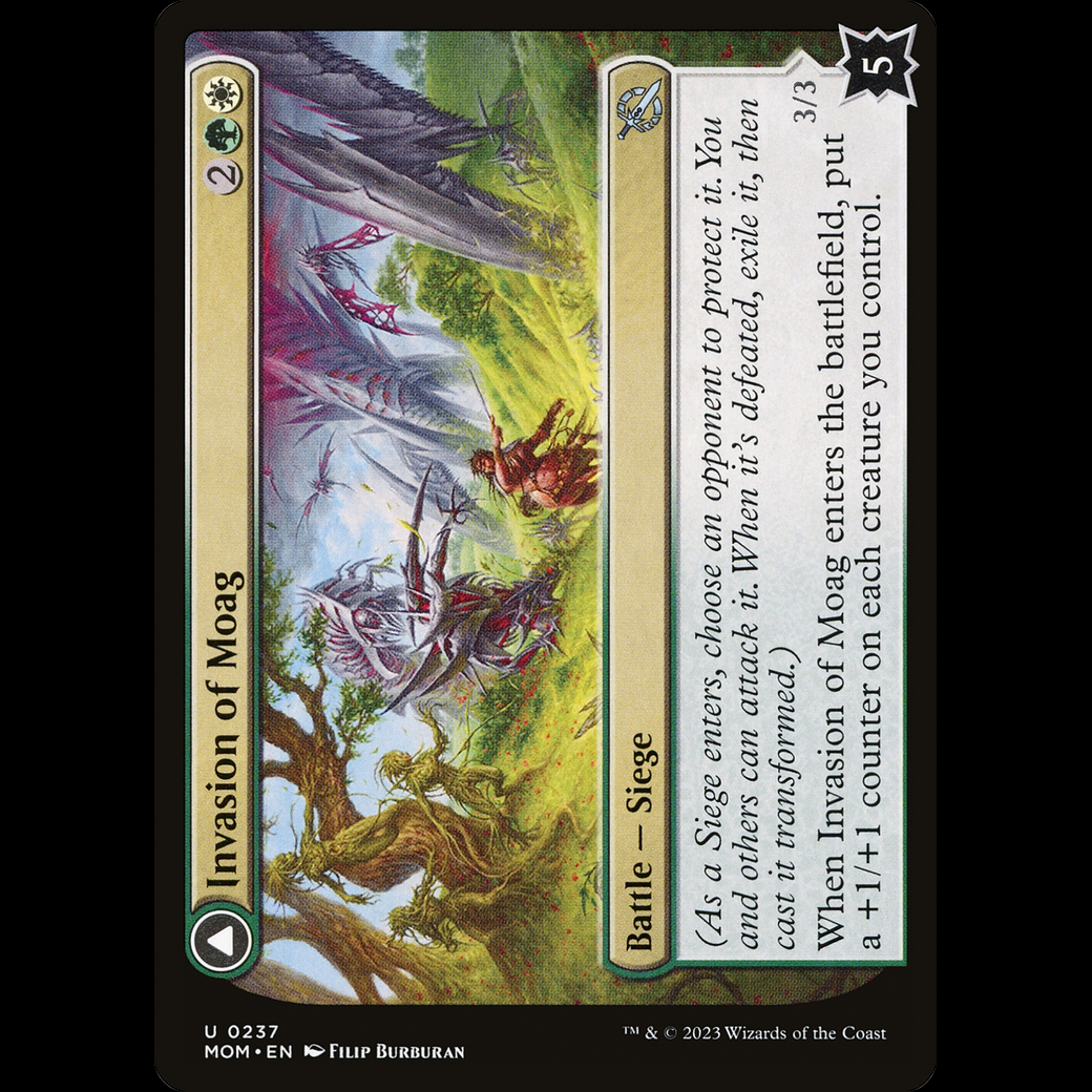 When Invasion of Moag enters the battlefield, put a +1/+1 counter on each creature you control.