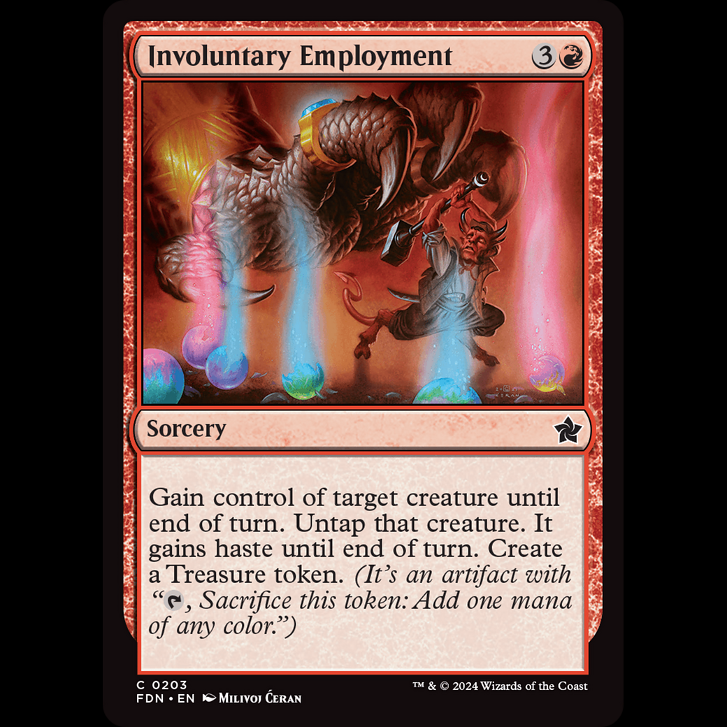 Gain control of target creature until end of turn. Untap that creature. It gains haste until end of turn. Create a Treasure token. (It's an artifact with ", Sacrifice this token: Add one mana of any color.")