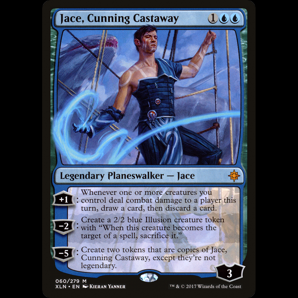 −5: Create two tokens that are copies of Jace, Cunning Castaway, except they're not legendary.