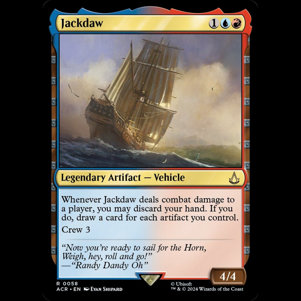 Whenever Jackdaw deals combat damage to a player, you may discard your hand. If you do, draw a card for each artifact you control.