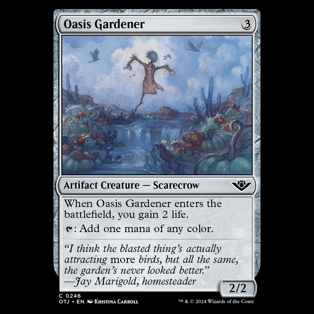 MTG Jardinero de oasis (Oasis Gardener) Outlaws of Thunder Junction otj#246 When Oasis Gardener enters, you gain 2 life. : Add one mana of any color.