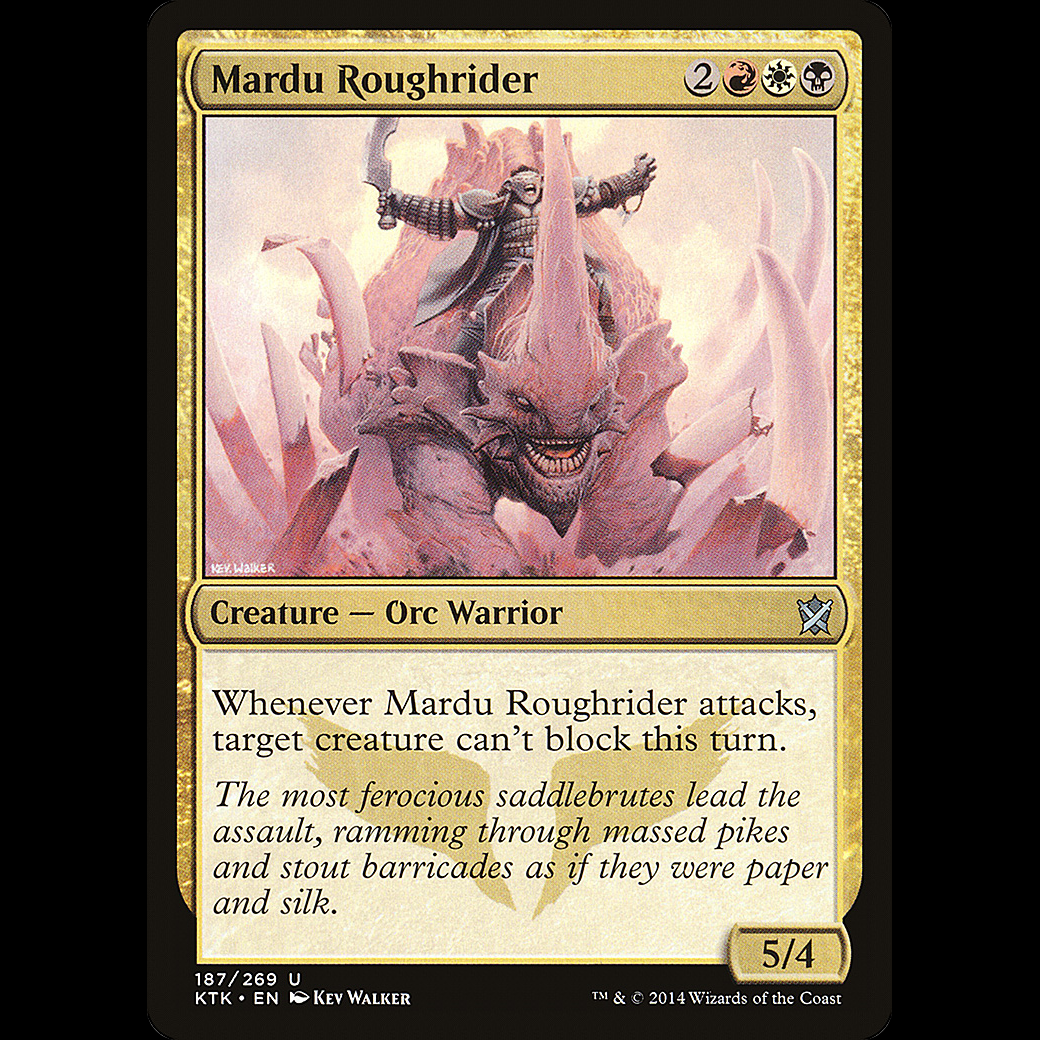 Whenever Mardu Roughrider attacks, target creature can't block this turn.
