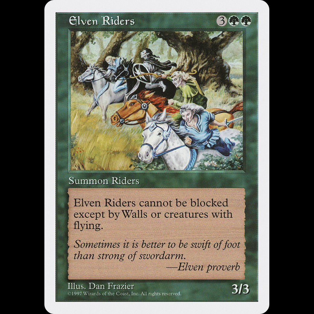 Elven Riders can't be blocked except by Walls and/or creatures with flying.
