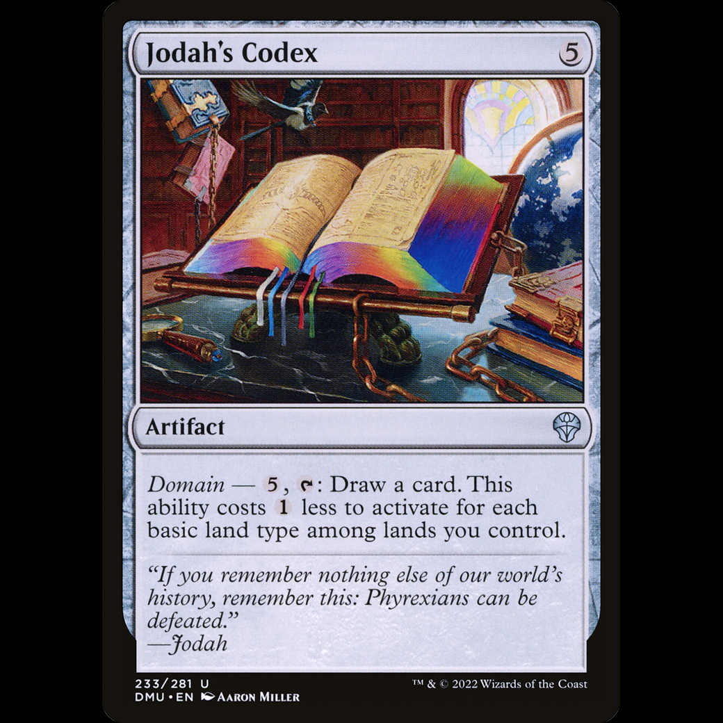 Domain — , : Draw a card. This ability costs less to activate for each basic land type among lands you control.