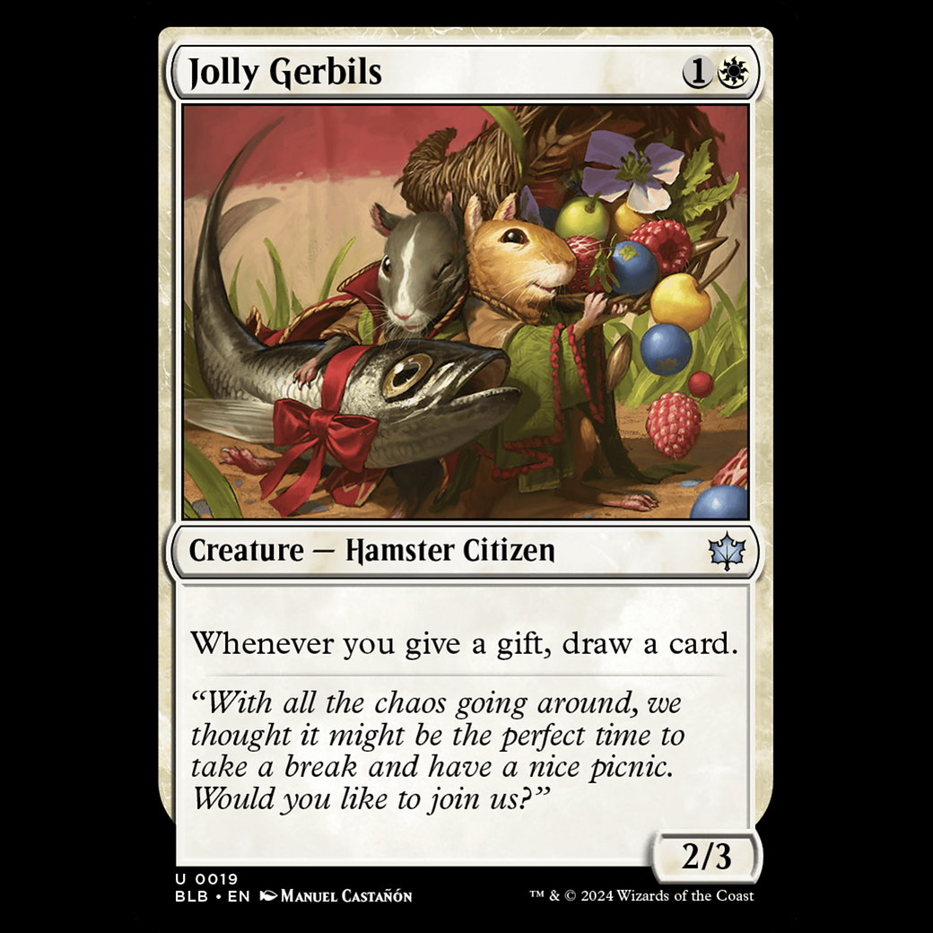 MTG Jolly Gerbils Bloomburrow blb#19Whenever you give a gift, draw a card.