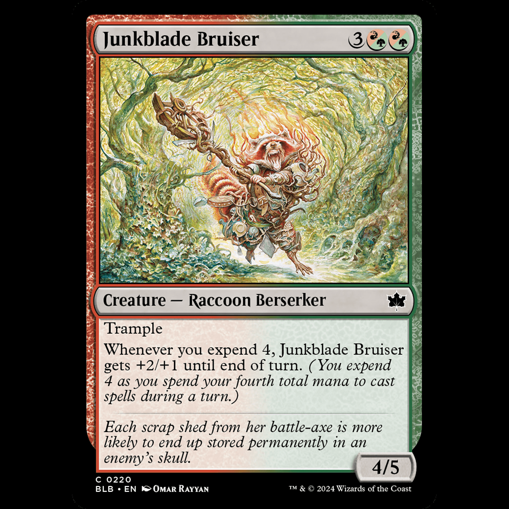Whenever you expend 4, Junkblade Bruiser gets +2/+1 until end of turn. (You expend 4 as you spend your fourth total mana to cast spells during a turn.)