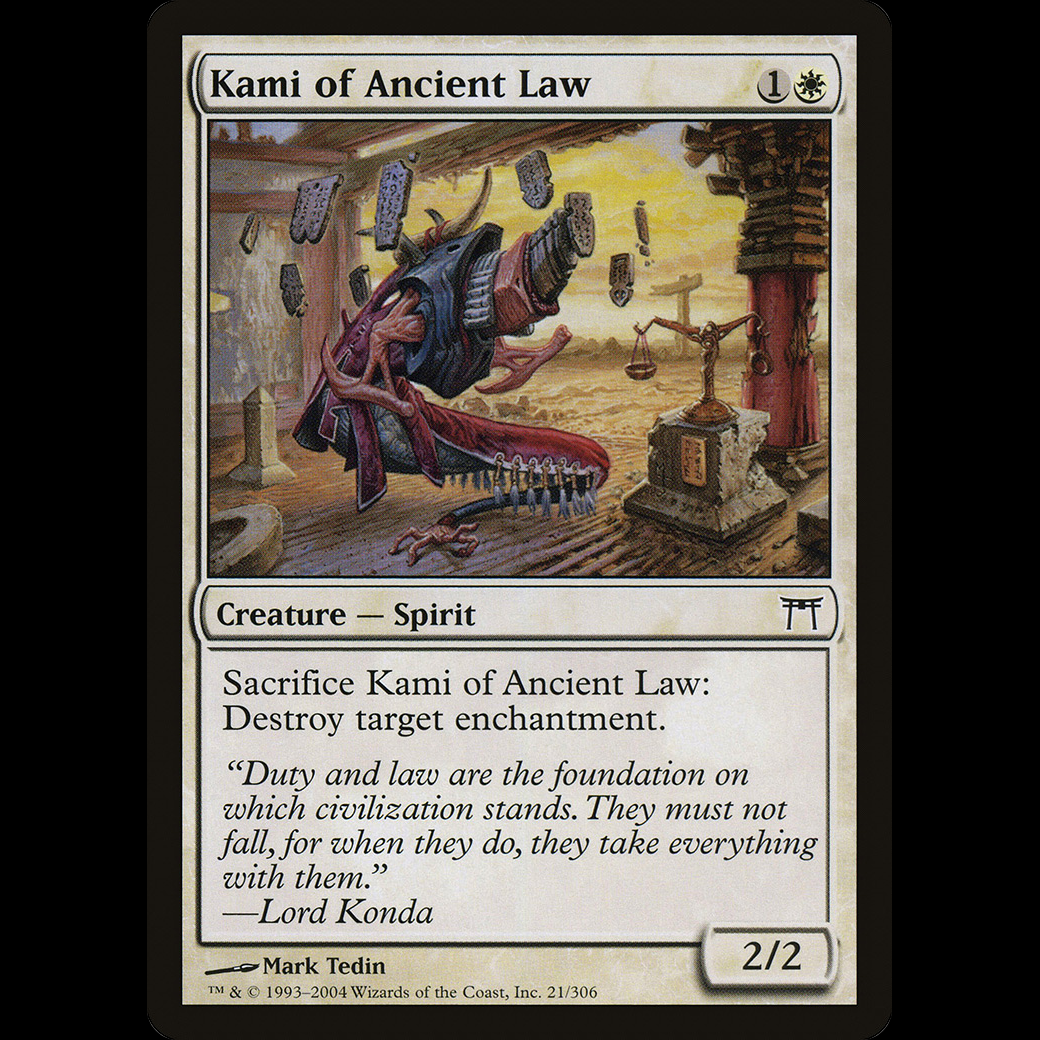 Sacrifice Kami of Ancient Law: Destroy target enchantment.