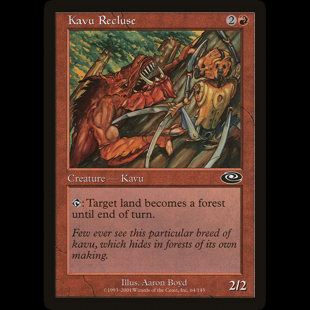 MTG Kavu Recluse Planeshift: Target land becomes a Forest until end of turn.