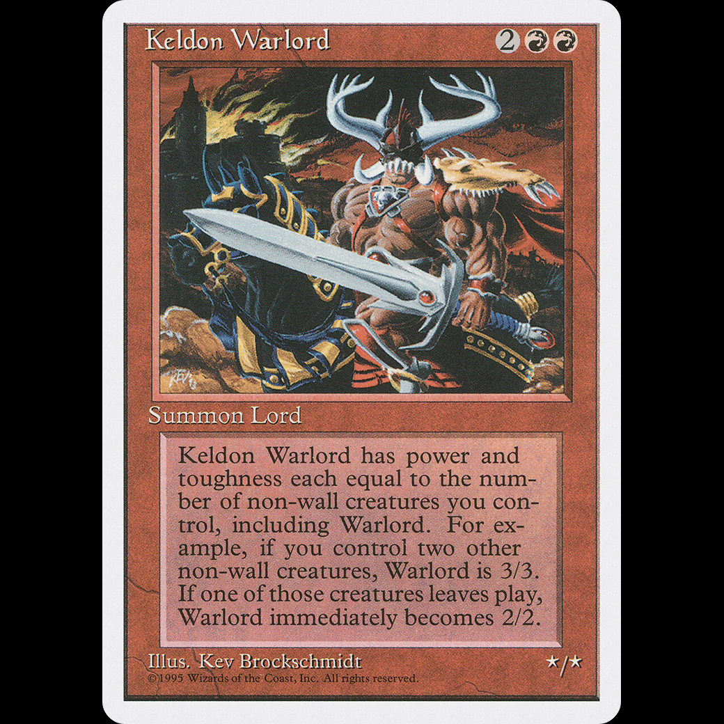 Keldon Warlord's power and toughness are each equal to the number of non-Wall creatures you control.