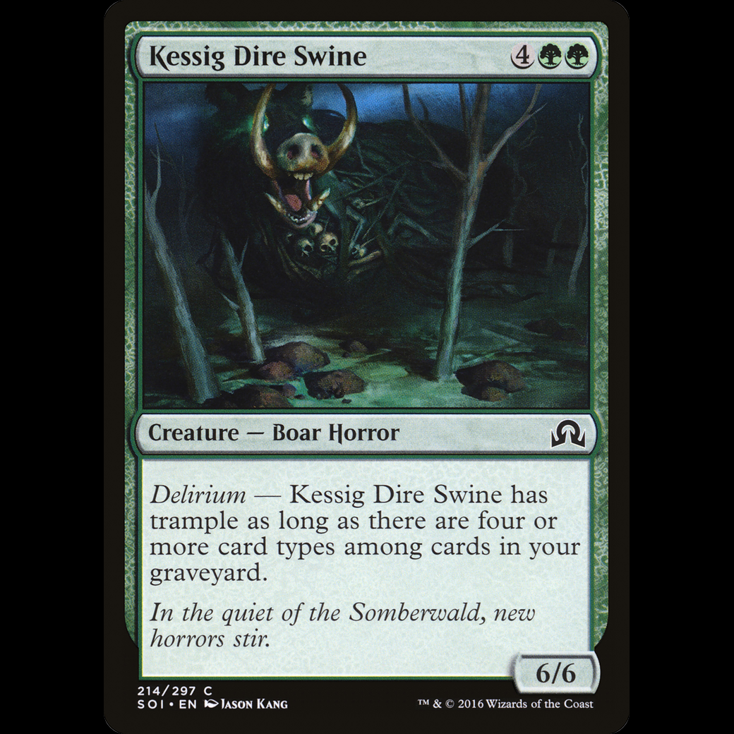 Delirium — Kessig Dire Swine has trample as long as there are four or more card types among cards in your graveyard.