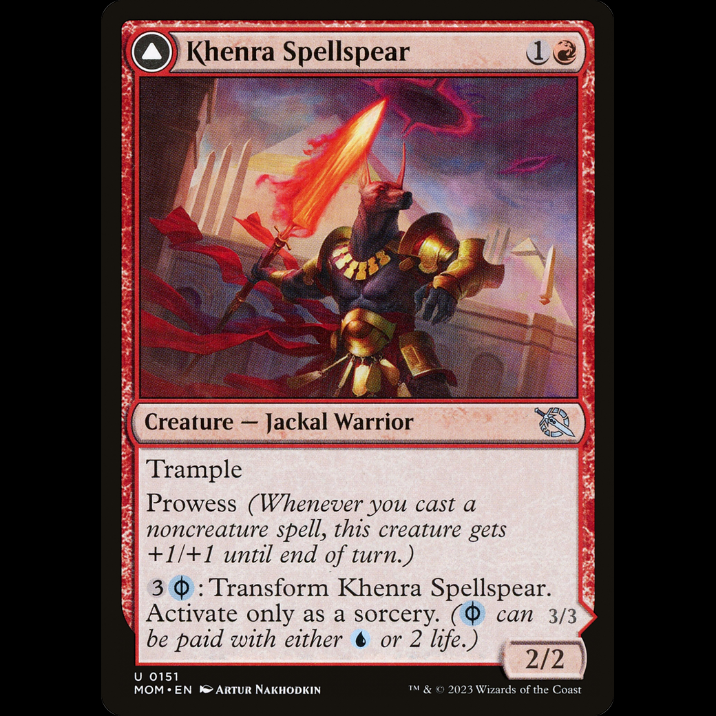 U/P: Transform Khenra Spellspear. Activate only as a sorcery. (U/P can be paid with either or 2 life.)