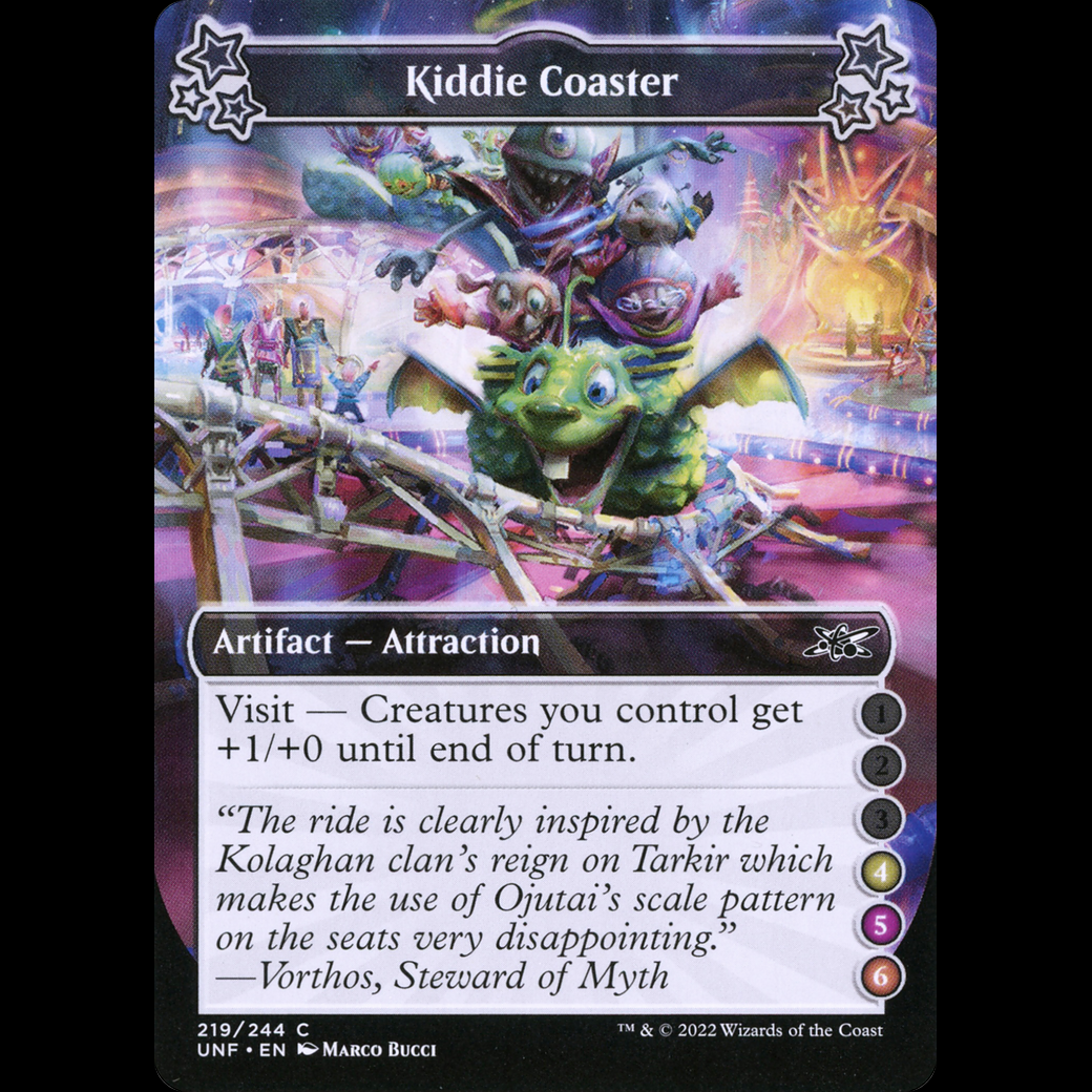 MTG Kiddie Coaster Unfinity unf#219fVisit — Creatures you control get +1/+0 until end of turn.