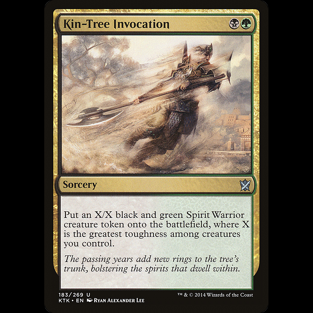 Create an X/X black and green Spirit Warrior creature token, where X is the greatest toughness among creatures you control.