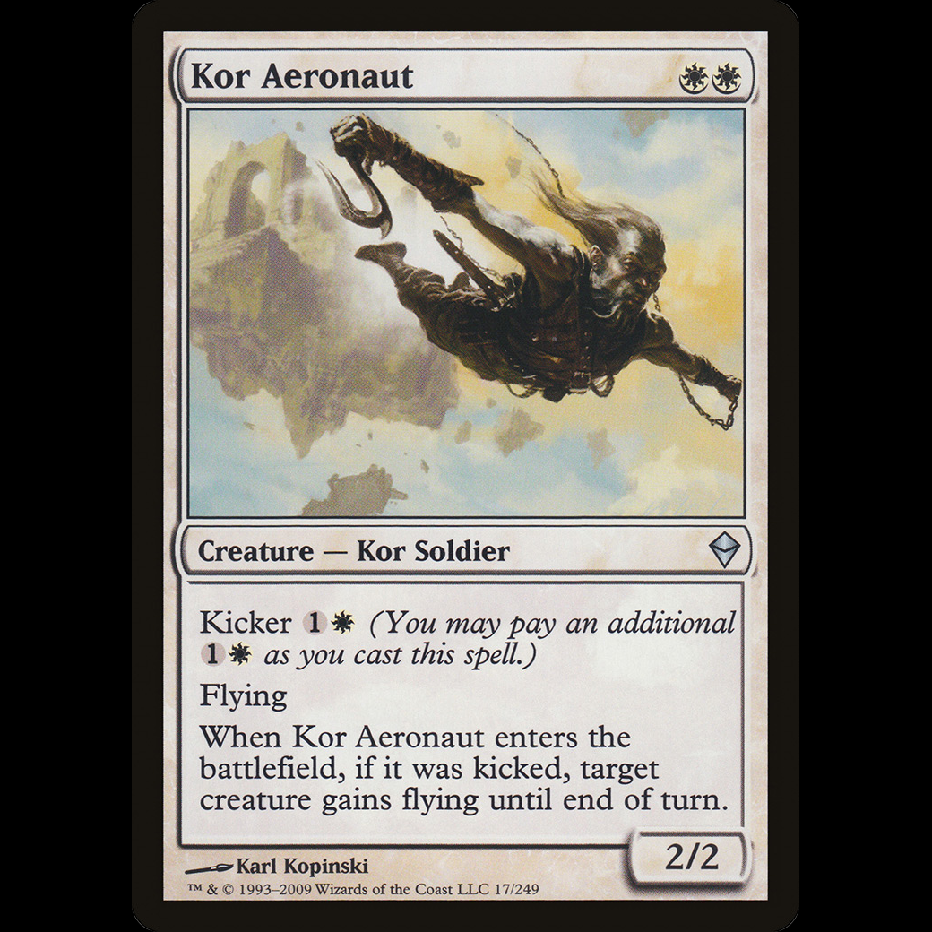 When Kor Aeronaut enters the battlefield, if it was kicked, target creature gains flying until end of turn.