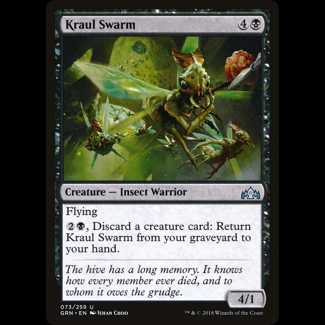 , Discard a creature card: Return Kraul Swarm from your graveyard to your hand.
