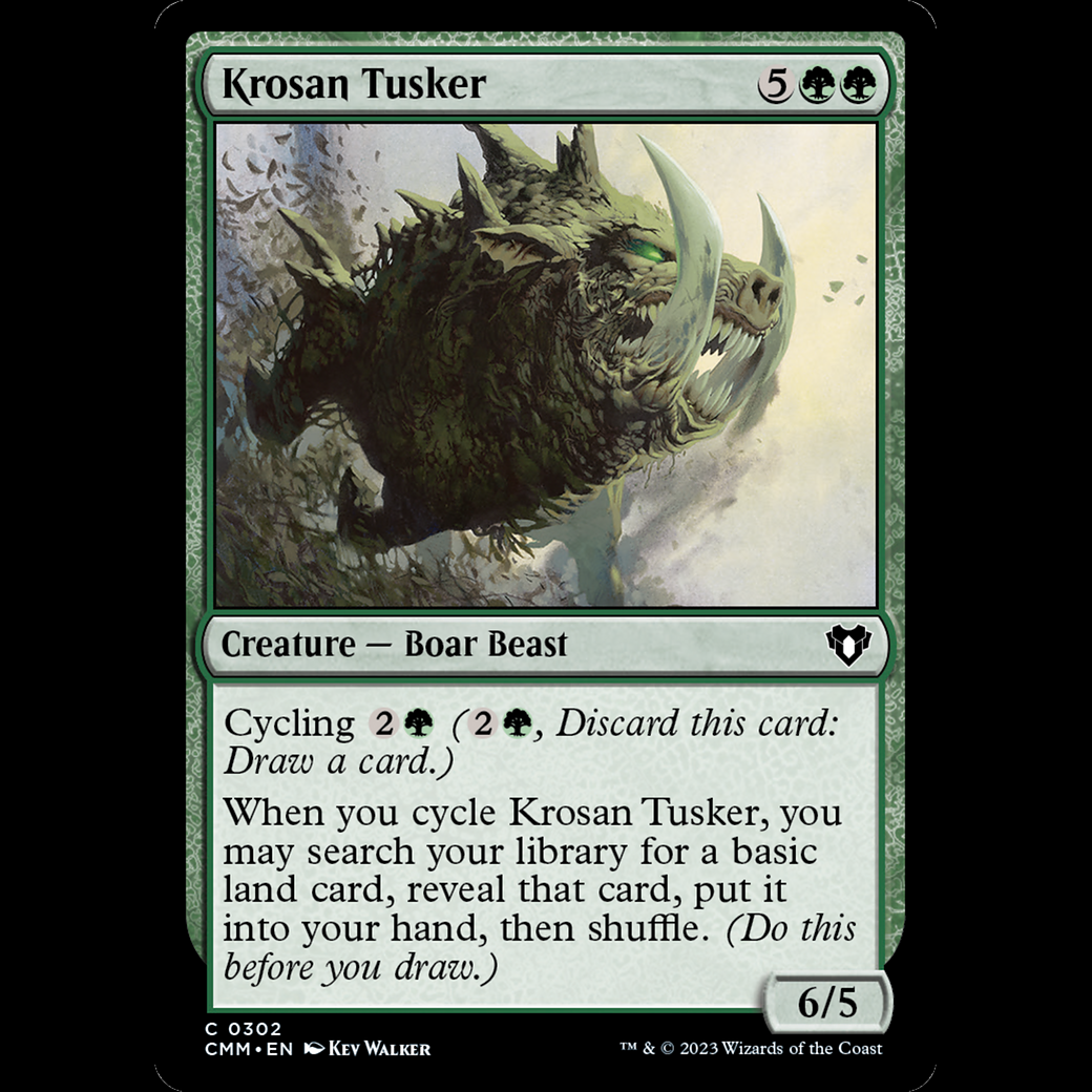When you cycle Krosan Tusker, you may search your library for a basic land card, reveal that card, put it into your hand, then shuffle. (Do this before you draw.)