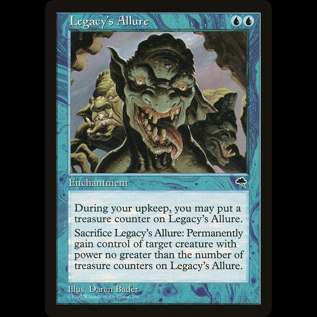 At the beginning of your upkeep, you may put a treasure counter on Legacy's Allure.