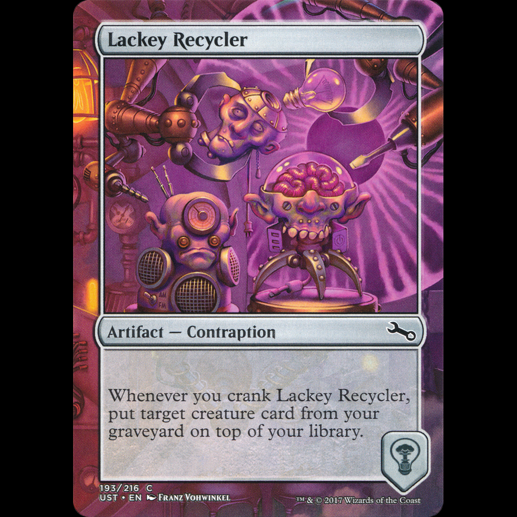 Whenever you crank this Contraption, put target creature card from your graveyard on top of your library.