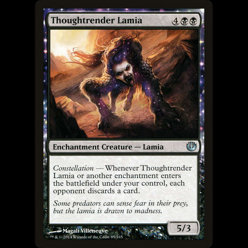 Constellation — Whenever Thoughtrender Lamia or another enchantment enters the battlefield under your control, each opponent discards a card.