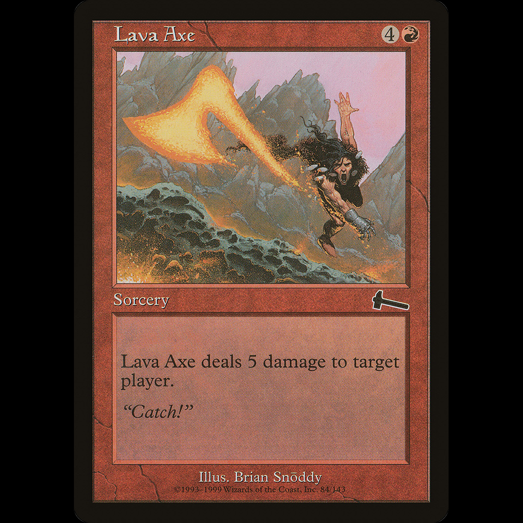 MTG Lava Axe Urza's LegacyLava Axe deals 5 damage to target player or planeswalker.