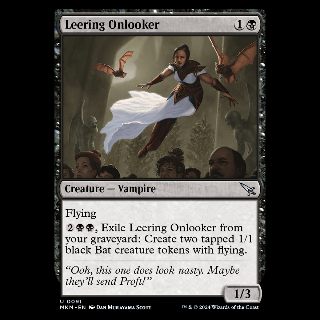 , Exile Leering Onlooker from your graveyard: Create two tapped 1/1 black Bat creature tokens with flying.