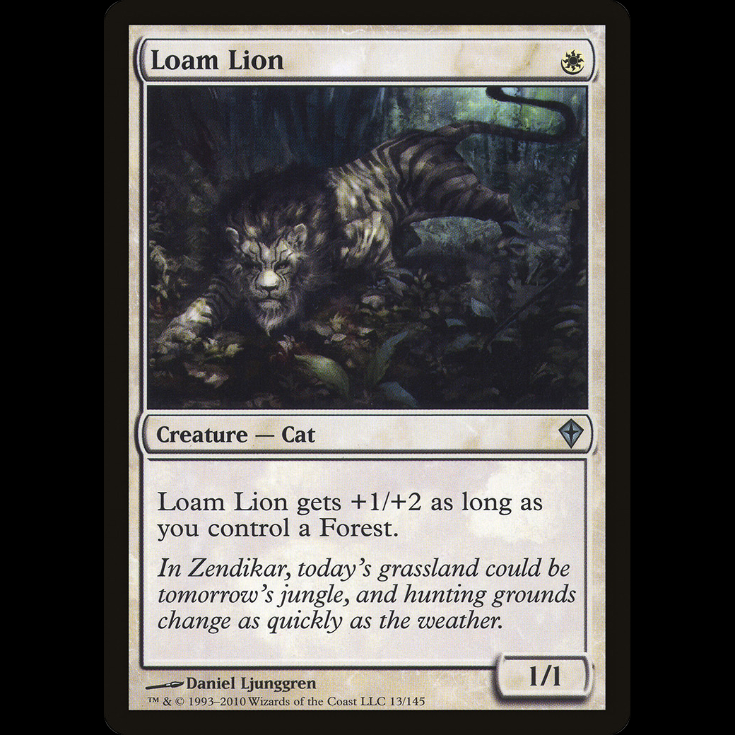 MTG León del barro (Loam Lion) WorldwakeLoam Lion gets +1/+2 as long as you control a Forest.