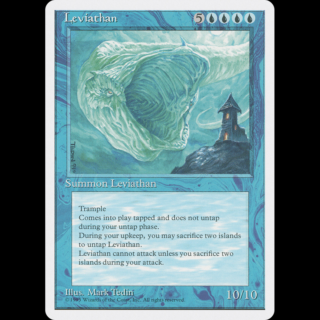 At the beginning of your upkeep, you may sacrifice two Islands. If you do, untap Leviathan.