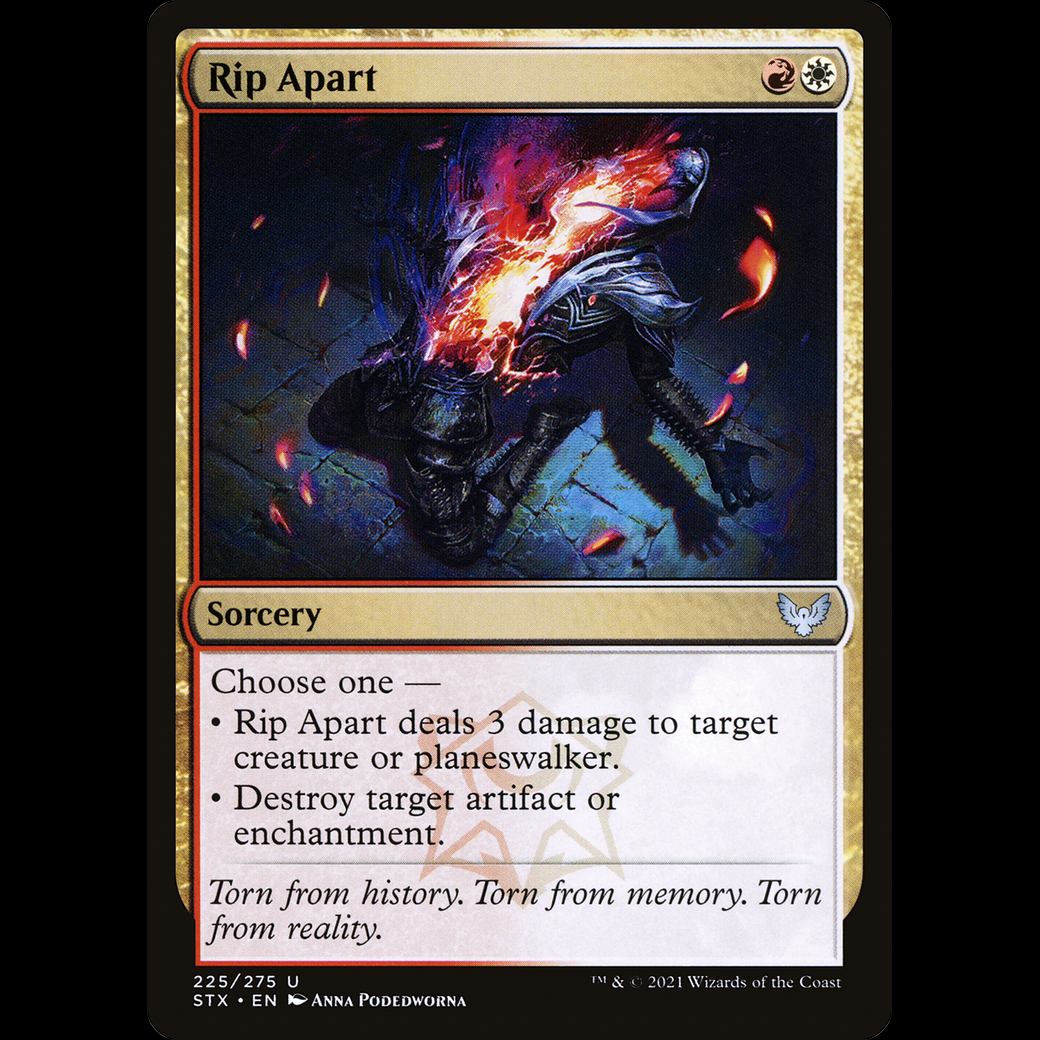 • Rip Apart deals 3 damage to target creature or planeswalker.